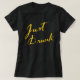 This super cute tank top says "Just Drunk" in a thick gold brush stroke on a black background, making it perfect for the girls at the bachelorette, since it coordinates with the bride's, "Drunk in Love" top. These are also available with the name of the bachelorette on the back. These tank tops are easy to customise to another colour top or t-shirt; the options are on the right side. If you need to move the type around, just click the "customise it" button or contact us at prettyfancyinvites@gmail.com for help. Check out the rest of the tops in the Bachelorette Party Drunk in Love Collection.