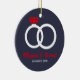 Christmas gift idea for engagement, wedding. Xmas red and blue ornament with wedding rings. Gift idea for just engaged or married couple.