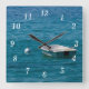 Wall clock featuring a boat in middle of Lake Huron. I took this photo from Mackinac Island, Michigan. Mackinac Island is an island and resort area, covering 3.8 square miles (9.8 km2) in land area, in the U.S. state of Michigan. Looking for more prints or products? Feel free to visit my store: http://www.zazzle.com/timelessmomentsphtgy