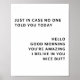 Just in Case No One Told you Today Hello Good Morning You are amazing I Believe in You Nice Butt - This is an awesome design that will make your day! It has a very cute message on it. The font is really cool. This is a must have for anyone who needs some inspiration.