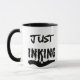 For artists who live for the feel of ink on paper, this bold black and white typography mug says it simply: Just Inking.