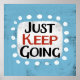"Just Keep Going" is a super cute motivational inspirational typography design on light blue with white accent trim.
