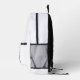 Just Keeping It Real black and white backpack with cityscape, dove, cross and "A Little Bit Holy. A Little Bit Hood." design.