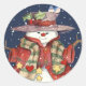 Snowman sticker with a string of ornaments has a greeting card and magnet to match.