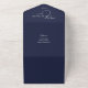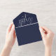 This all-in-one minimalist wedding invitation features elegant typography on a navy blue background. The invitation includes a perforated RSVP card with your wedding website QR code. Designed by Thisisnotme©