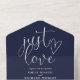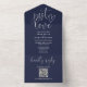 Just Love Modern QR Code Navy Blue Wedding All In One Invitation