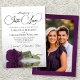 Just Love Plum Purple Rose Photo on Back Wedding Invitation
