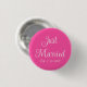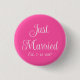 Button Pin casual fun fashion statement accessory printed with Hot Pink Colour background and Just Married in White Colour text typography lettering design by TheFabricSeal print on demand shop at Zazzle.com #ZazzleMade https://www.zazzle.com/store/thefabricseal TheFabricSeal©️Original.