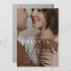The design features an intertwined ampersand elegantly connecting the couple's names, which are displayed in a large serif font for a timeless and sophisticated look. The wedding date is beautifully written in script calligraphy, adding a graceful touch to the layout. The invitation's background showcases a photo of the couple, creating a personal and intimate feel while blending seamlessly with the typography and overall aesthetic.