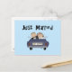 Bride and Groom in a car after the wedding. Great T Shirts and gifts for the bride and groom to be. Great T shirts mugs, buttons, hats and totes for the honeymoon.