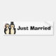 Great bumper sticker for all you newly weds. Just Married in bold black text and sweet graphics of two penguins dressed like bride and groom. Cute decoration for the newly wed's car.