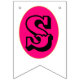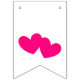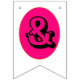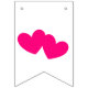 Gold JUST MARRIED bunting flags, initials and magenta hearts on whit background. A versatile banner or Bunting flags for most weddings. The first flag has magenta double heart, the following flags has the lettering ‘JUST MARRIED» with the initials to the couple. The last flag has a magenta double heart again. Customise this Bunting flags with your letters for your big day. Anice decor behind the couple under the reception dinner.
