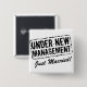 Just Married button with funny wedding quote stamp | Under New Management. Cute gift idea for groom and bride.
