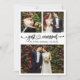 Modern Minimalist Simple Calligraphy Heart Script Just Married 3 Photo Wedding Announcement Card