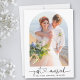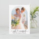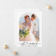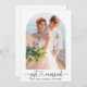 Modern Minimalist Simple Calligraphy Heart Script Just Married Photo Wedding Announcement Card - Arch Photo Frame - Black & White