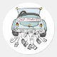This is a cute image of a car that reads Just Married and dragging metal cans behind it. Personalise this design for purchase any way you want. Image is property of Home for Holidays.