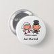 Just Married wedding couple cartoon holding hands button. You can change the text.