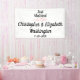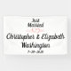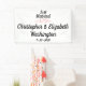 This product is perfect to announce the new bride and groom. It says "Just Married" at the top with the groom's and bride's name beneath (customisable) and the last name and date which is customisable of course. The print is in black and there are a group of pink hearts shown.