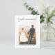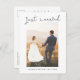 Simple and modern wedding announcement postcard featuring a hand lettered casual script that says "Just Married" with hearts on top of your photo. The message on the back of the card is editable.
