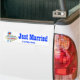 Las Vegas wedding announcement - a "Just Married" bumper sticker for newlyweds who tied the knot in Las Vegas, Nevada.