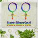 Two rainbow symbols for women and Venus announce your new "Just Married" status. Great gifts for the wedding and the reception afterward.