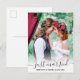 Modern Trendy Calligraphy Just Married Wedding Photo Wedding Announcement Postcard