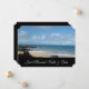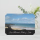 Just Married photo card is shown with a photo print of a beautiful beach in Hawaii with a black accent with text, customise this card and change the photo to yours, change the text to yours, you can even put a message on the back.