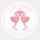 Just Married Pink Flamingos Tropical Beach Wedding Classic Round Sticker