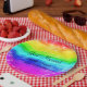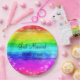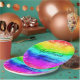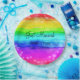 Beautiful rainbow colours and hearts with the words Just Married and the names of the newly-wed couple and their wedding date.
