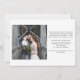 This simple and stylish wedding elopement announcement card features a personal wedding photo on the front, with the words "just married" in rustic, white handwritten script. The back of the card has room for another photo, plus room to either elaborate on your elopement details, or provide details for an after wedding reception or celebration. An elegant design that is the perfect way to let friends and family know you are just married!