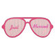 Perfect for the beach bound couple ... just married shades with pink and white background and pink frames. Just Married is in a hot pink script font.