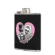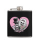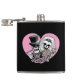 Bride and groom skulls are all dressed in their wedding finest and set on a pink heart with JUST MARRIED! text.