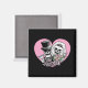 Bride and groom skulls are dressed in their wedding finest with JUST MARRIED text.