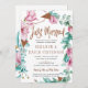 Modern chic spring or summer post wedding brunch stylish invitation template on a clear white (editable) background featuring a beautiful blush pink magnolia flowers with sage green and blue mint eucalyptus foliage and copper glitter JUST MARRIED calligraphy script. ++++++++++++++ Personalise it with your details! ++++++++++++++++++ The invitation is suitable for trendy modern watercolor floral themed romantic elegant garden outdoor or backyard glam post wedding / newlyweds elopment parties.