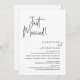 Announce your happily ever after in style with our modern script design wedding elopement party invitation card. Our Happily Ever After Just Married Party Invitation card is ideal for couples who have decided to elope and want to host a party to celebrate their union. With its sophisticated yet playful design, this invitation is sure to set the tone for an unforgettable event. The invitation card features a minimalist design with a black and white scheme, adding a touch of timeless elegance to your celebration.