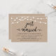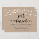 Beautiful Modern Rustic Farm String Lights, Black Script font on Brown Kraft Background, Wedding Elopement Announcement, Invitation card (Just Married). This is perfect for your wedding reception and post-wedding celebration party. Add your details in matching font / lettering.