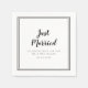 "Just Married" simple, minimalist and chic wedding napkin features a modern design with a double framed border in sophisticated black on a crisp white background. This modern simple design provides timeless, classic sophistication. Celebrate with the new Mr. & Mrs. template allows for customisation of two text lines and one date lines in elegant black lettering and script. These are a perfect accompaniment for any wedding reception party! Be sure to see the collection link on this page to view all of the matching items! Please direct questions or custom colour requests to invitationsuites@gmail.com.