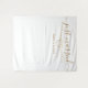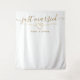 Elegant, modern, minimalist Just Marries photo prop wedding backdrop with gold rope heart and simple calligraphy script.