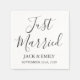 Just Married White and Grey Napkins which are perfect for a Black and White Wedding Reception.The custom napkins allow the ability to update the bride and grooms name and wedding date.