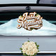 Celebrate your special day in style with this elegant gold and white Just Married Wedding Car Window Cling. Designed with a beautiful vintage-style script, this decoration adds the perfect finishing touch to your getaway car as you leave your wedding celebration.