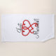 Just Married with Red Linked Swirly Hearts Beach Towel