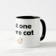 A funny and cute cat mug featuring the phrase “Just one more cat… I swear”.