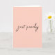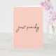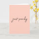 Simple stylish "just peachy" custom quote art design in modern handwritten script typograpy in a minimalist design style on a pastel peach color background.