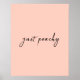 Simple stylish "just peachy" custom quote art design in modern handwritten script typograpy in a minimalist design style on a pastel peach color background.