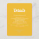 A wedding insert card with retro white typography is a stylish and unique choice for a special occasion. The bold, bright letters stand out against the yellow background, creating a striking visual contrast. The the enclosure card backer is enhanced by the addition of floral monogram design details on a light peach background, adding a touch of whimsy and playfulness to the overall design.