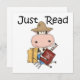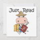 Just Read T-shirts, hoodies, mugs, cards, stickers, buttons, magnets, mousepads, journals, keepsakes, and other reading theme apparel and gifts that promote reading in a cute way! A cow with a straw hat and pitchfork rests against a hay bale with a book!