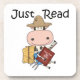 Just Read T-shirts, hoodies, mugs, cards, stickers, buttons, magnets, mousepads, journals, keepsakes, and other reading theme apparel and gifts that promote reading in a cute way! A cow with a straw hat and pitchfork rests against a hay bale with a book!