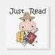 Just Read T-shirts, hoodies, mugs, cards, stickers, buttons, magnets, mousepads, journals, keepsakes, and other reading theme apparel and gifts that promote reading in a cute way! A cow with a straw hat and pitchfork rests against a hay bale with a book!