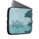 A green-blue textured drawing featuring the silhouette of a man sitting under a tree by a pond contemplating. The word "Reflect" rests on the lake's surface, the text and shadows reflected in the perfectly still water.