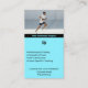 The Just Results Turn Loyal Athletes Into Advocates Referral Card template is part of the "Electric Blue Fitness Business Cards & Marketing" Collection. Customise the front with an athlete's image, tagline, logo, special services, and social media contact details. The back has space to fill in the new client's name, the advocate's name, and a tracking ID. Below that is space for the personal coach's name, professional title, and credentials, as well as a call-to-action, contact number, QR code, and terms.
